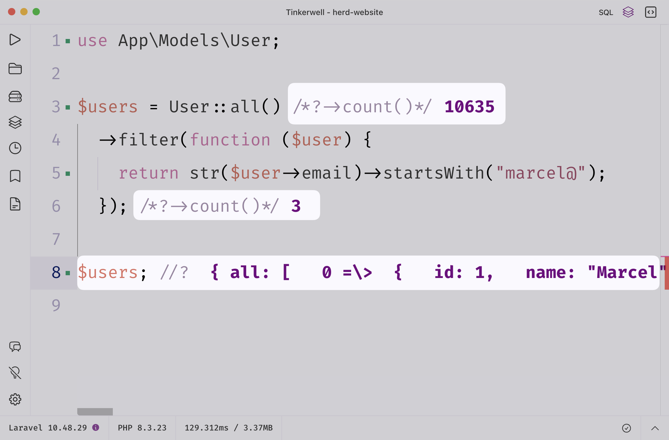 Boost your productivityWhen you start using Tinkerwell, you’ll wonder how you were ever productive without it.
